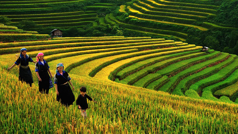 Terraced rice fields can be found in the Mai Chau, Pu Luong, Mu Cang Chai, and Sapa regions.