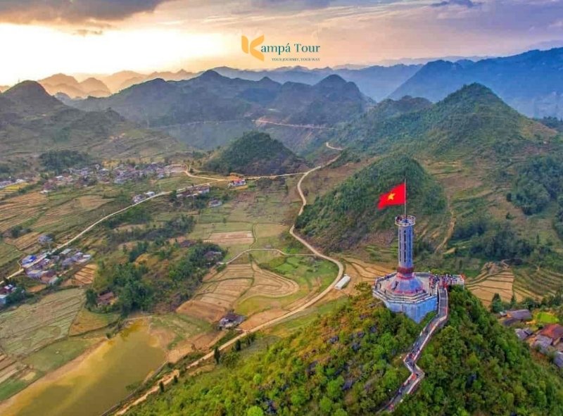 Lung Cu Flag Tower, at Vietnam’s northernmost point, stands as a symbol of patriotism, with its red flag and yellow star waving proudly amid the stunning plateau.