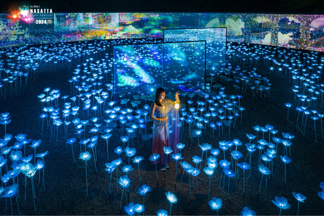 The Nasatta Light Festival is a collaborative project organized by Nasatta Park in partnership with the Tourism Authority of Thailand, Signify Co., Ltd., BSG Glass, and Sirilert Corporation. Over the years, it has become the grandest outdoor light display in Thailand, transforming the Land of Smiles into a “capital of light” that attracts millions of tourists worldwide, especially photographers and art enthusiasts.