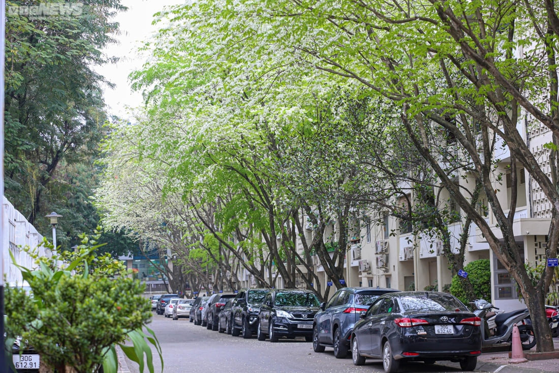In Hanoi, you can find chinaberry flowers bloom along sidewalks in the Old Quarter, near collective housing areas, and along the Hong Ha Road near the Yen Phu intersection, as well as in parks like Thong Nhat Park, where the flowers line the streets, making for a romantic scene.