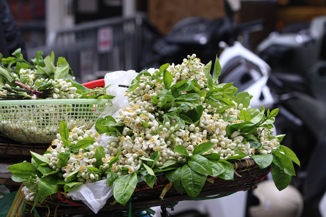 In Hanoi, visitors can find pomelo flowers sold by street vendors or on bicycles throughout the city, especially in the Hanoi Old Quarter.