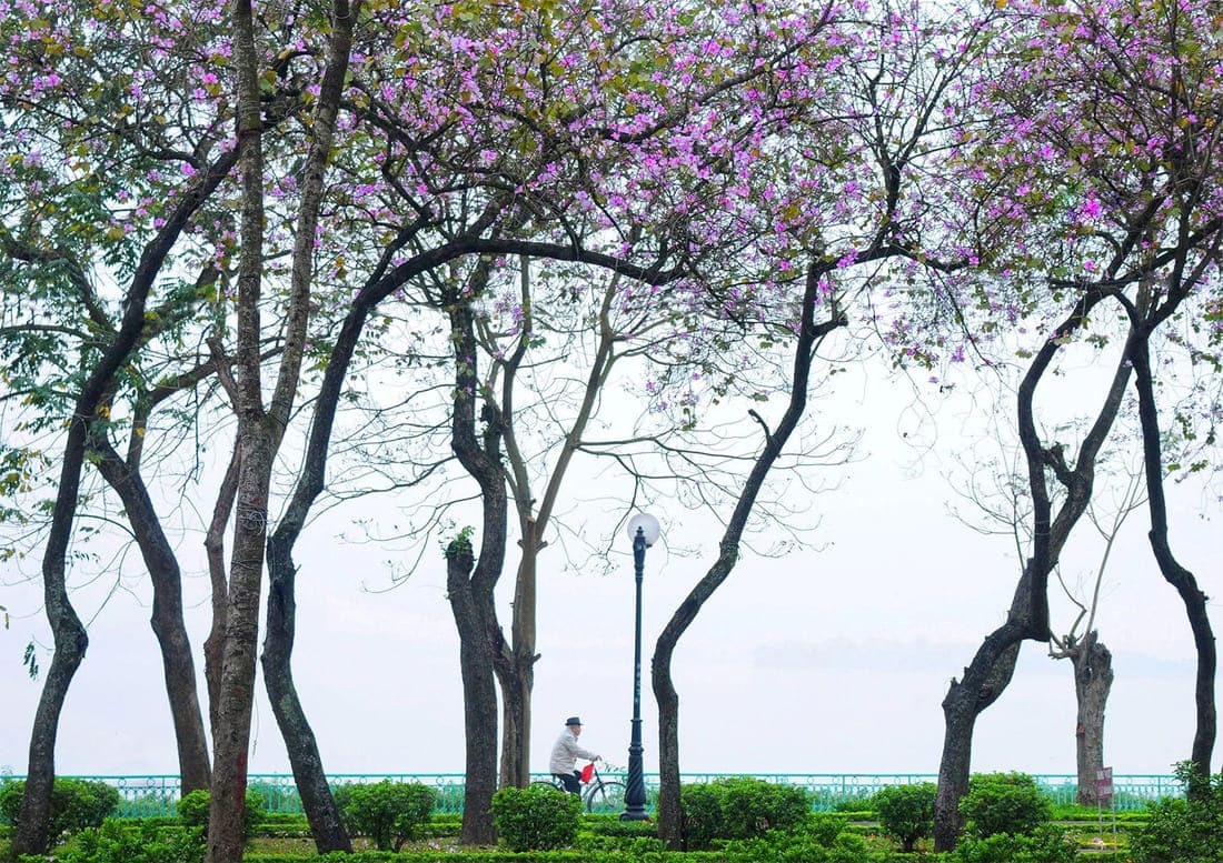 Known as a symbol of the Northwestern mountains, ban flowers also bloom beautifully in Hanoi. The most famous ban trees in the city can be found along Hoang Dieu Street, opposite the Martyrs Memorial, along Thanh Nien Street, Lenin Park, and in the Ciputra urban area.