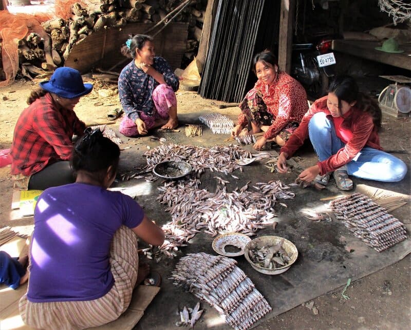 Kampong Khleang lives with the seasons. When the water recedes, fishing gives way to agriculture. The exposed land is rich and fertile, and families grow rice or vegetables. But even during the wettest periods, fishing remains central: fresh fish, smoked fish, fermented fish paste (prahok)... Everything the lake offers is valued.