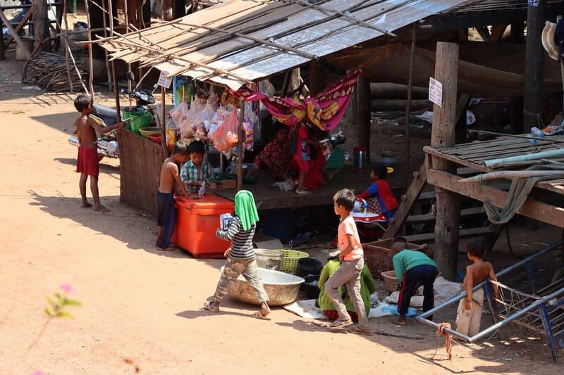 Kampong Khleang is one of the largest communities on the northern banks of the Tonle Sap, with more than 10,000 inhabitants. The village consists of two distinct areas: houses on stilts firmly anchored in the land, and, further on the lake, floating houses, often occupied by Vietnamese families without recognized nationality. These mobile homes, mounted on barrels or metal structures, drift slowly to the rhythm of the water, due to a lack of access to land.