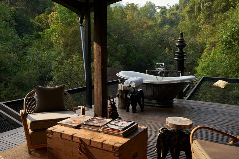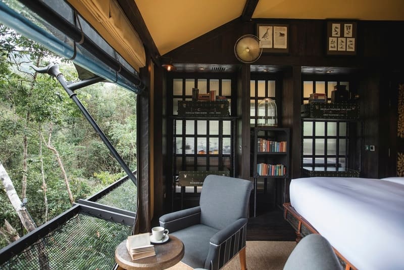 Inspired by early 20th-century expeditions, each tent combines sturdy canvas, antique furniture, and tropical elegance. Think teak accents, silk drapes, open-air baths, and private terraces on stilts. Guests enjoy the soothing sounds of the jungle without giving up modern comforts like Wi-Fi and plush bedding. The attentive and discreet staff ensures a seamless experience that makes you feel like an explorer staying in a five-star lodge.