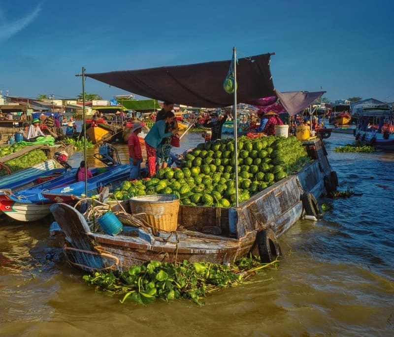 In the grand cities of the Mekong Delta, life is similar to that in the rest of Vietnam. However, a distinctive feature of the region is the sight of boats transporting rice, sand, fruits, and vegetables, leisurely sailing on rivers and canals.