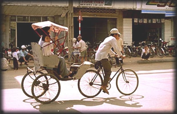 While you are in the Mekong Delta, don't forget to travel on board a xe lôi, now called a motorized cyclo.