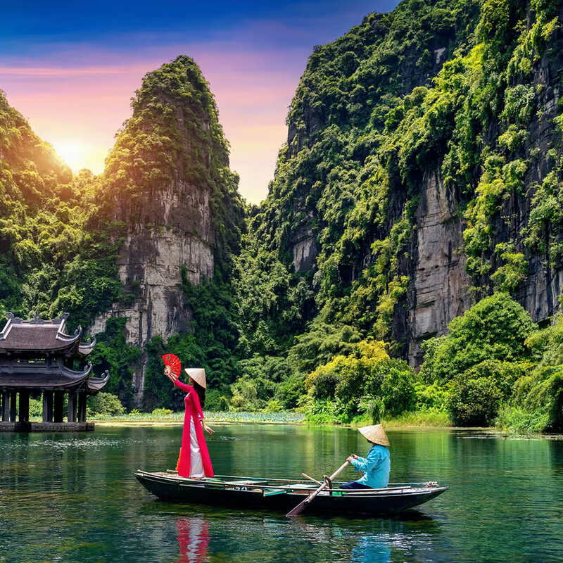 Ninh Binh, often called “Ha Long Bay on land”, is where nature, history, and culture meet in Northern Vietnam. Just about two hours from Hanoi, you will find the UNESCO World Heritage Trang An complex, dramatic limestone mountains, emerald rivers, ancient temples, and quiet countryside villages.