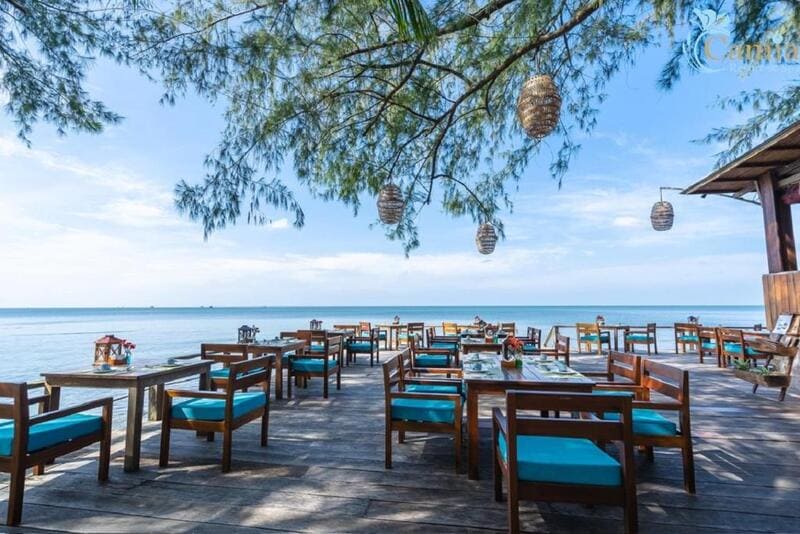 Camia Restaurant, which specialises in fresh seafood and Vietnamese cuisine, is situated in a prime beachfront location and offers a romantic setting. It's a popular choice for couples because of their grilled fish and sunset atmosphere.