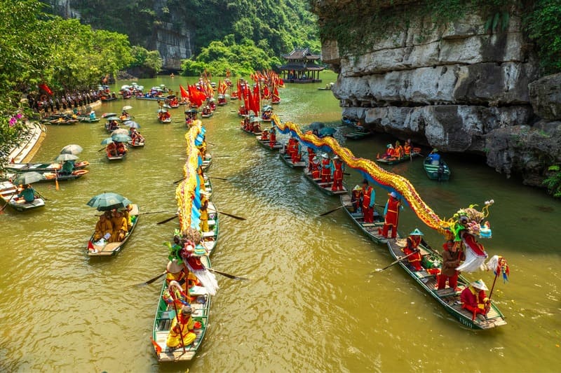 Held every year at the Trang An Ecotourism Complex, the Trang An Festival—also known as the Festival of Saint Quy Minh Dai Vuong—honors a revered historical figure who defended the nation from invaders. The celebration reflects the Vietnamese spirit of gratitude and remembrance for national heroes and ancestral values.
