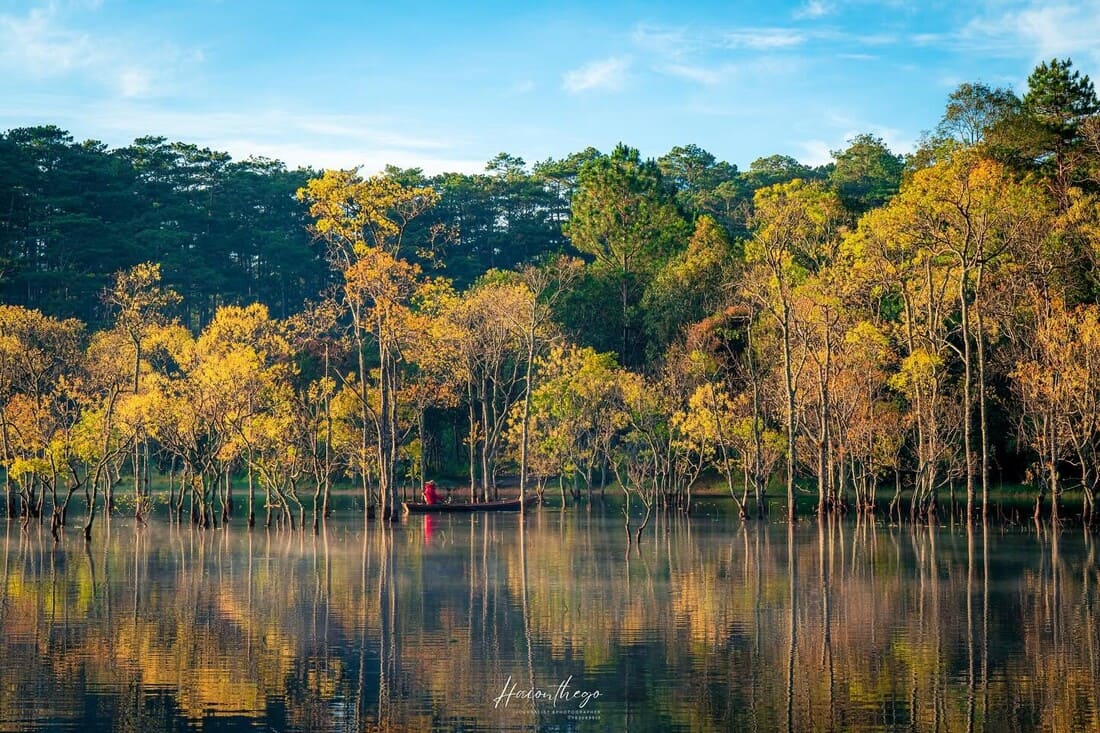 Located about 15 kilometers from the city center, Suoi Tia is one of the rare places in Da Lat where you’ll find a flooded forest, dominated by the iconic water Dipterocarpus trees. Since Suoi Tia is part of the Tuyen Lam lake water system, you can rent small boats or SUP to explore the upstream, especially calm waters among flooded forest trees.