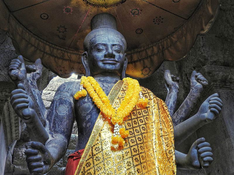 Ta Prohm: This quiet, sprawling monastic complex is only partially cleared of jungle overgrowth. Intentionally left partially unrestored, massive fig and silk-cotton trees grow from the towers and corridors offering some of the best ‘tree-in-temple’ photo opportunities at Angkor. Flocks of noisy parrots flit from tree to tree adding to the jungle atmosphere. Continue to visit Mebon temple. Enjoy sunset at Pre Rup Temple. Overnight in SiemReap.
