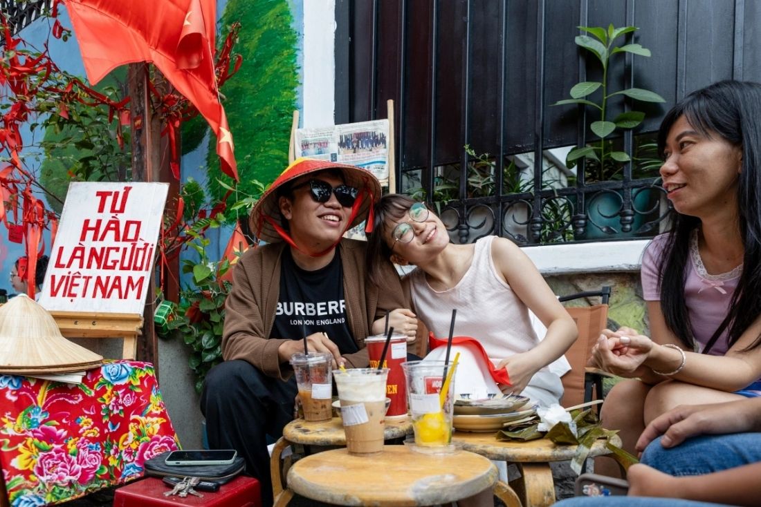 Cafés stand out with original decorations, blending Vietnamese flags, traditional conical hats, and even drinks specially created for the occasion.