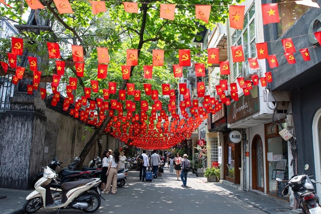In Hanoi, the streets overflow with patriotic colors. National flags, banners, and slogans adorn every corner of the city.